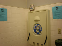 I had my camera with me because I had had it at football, and my “hmmm, this has blog potential” sensor went off when my eye was drawn to the two identical signs posted on the wall. They read: